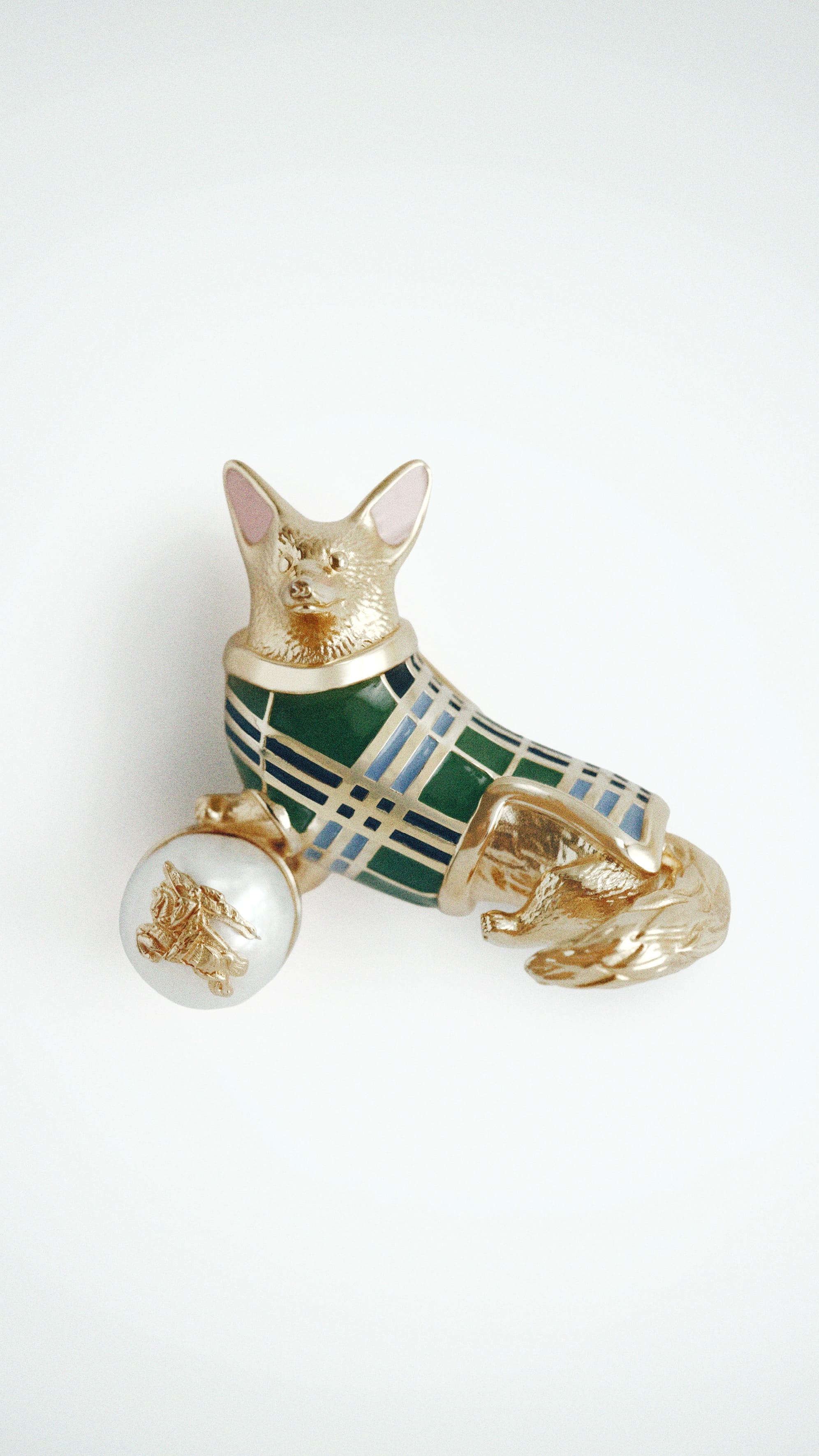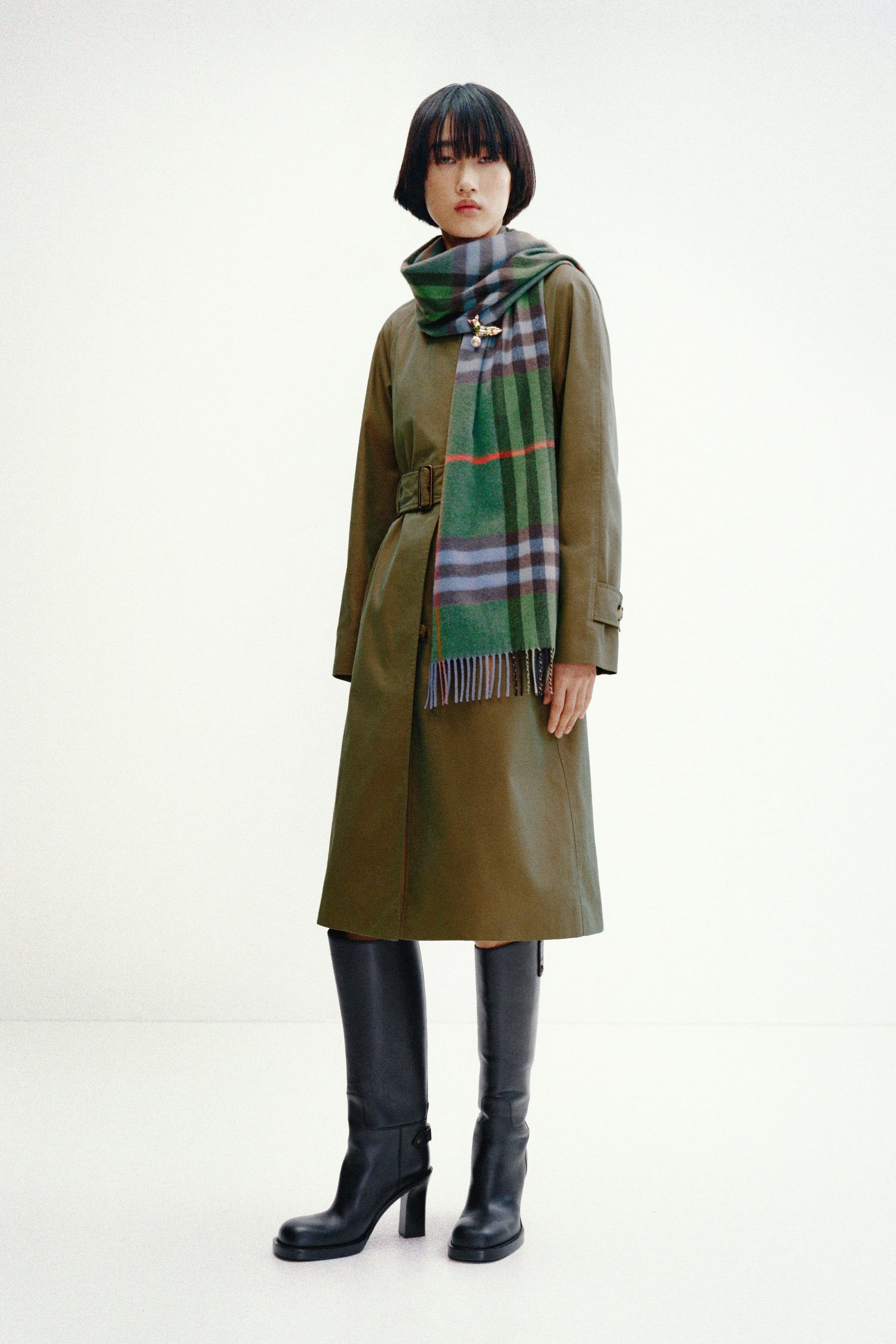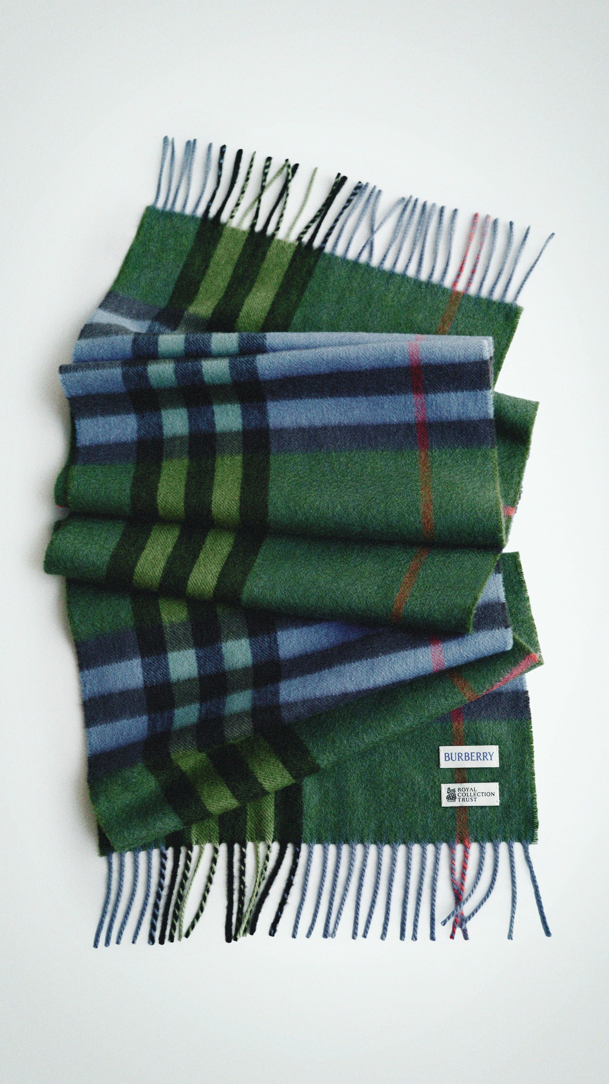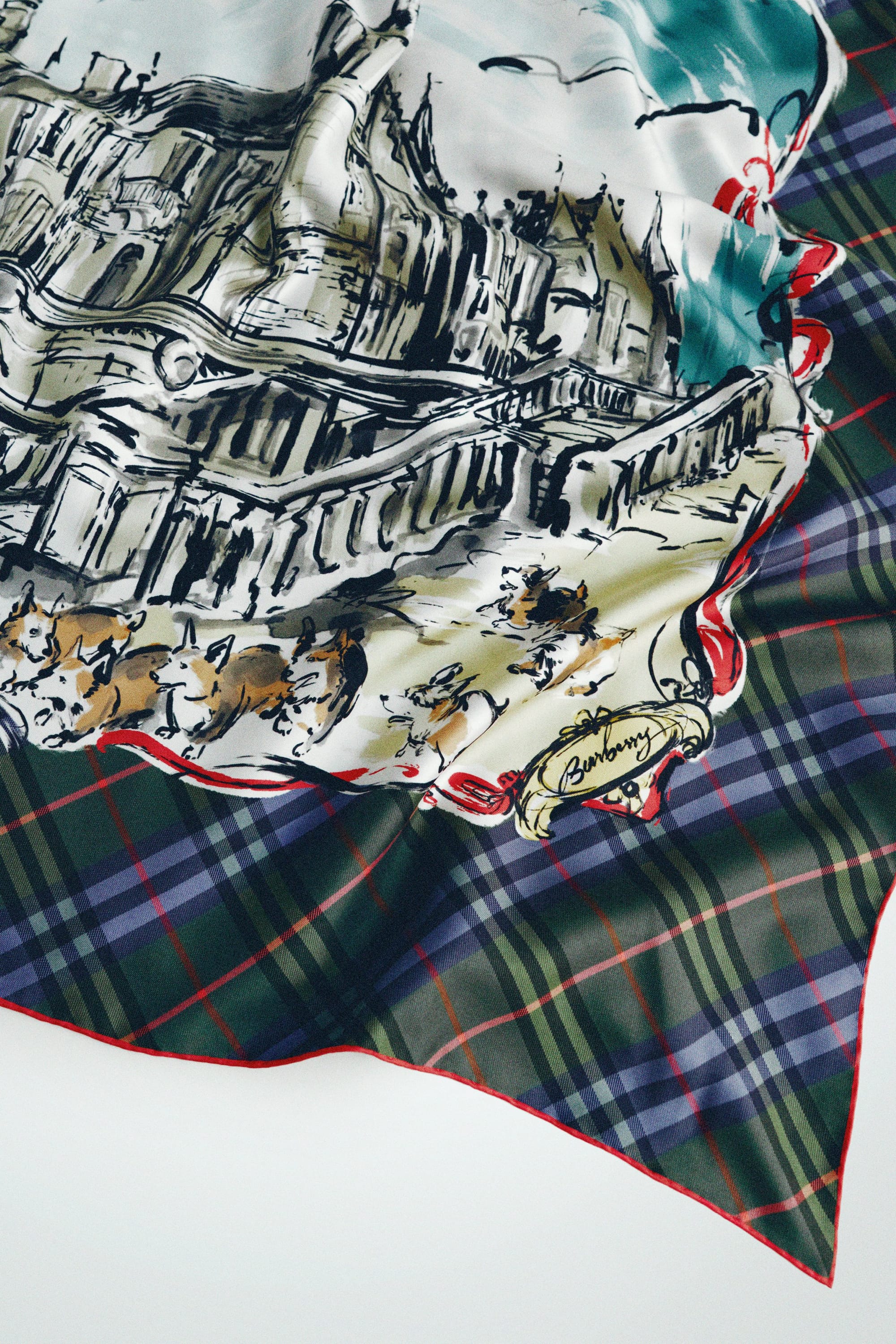 Burberry was awarded a Royal Warrant by the Queen in 1955, and she often chose the brand for outdoor pursuits. The new capsule collection comprises a long gabardine car coat tailored in Yorkshire, a cashmere scarf woven in Scotland, a silk twill scarf featuring a hand-painted depiction of Balmoral Castle, and a gold-plated brooch in the shape of a corgi. A new holly green colourway of the Burberry House Check has been created especially for the collection, inspired by the Old Stewart Tartan. A Burberry riding cape and silk scarf from the Queen's wardrobe will feature in the exhibition.