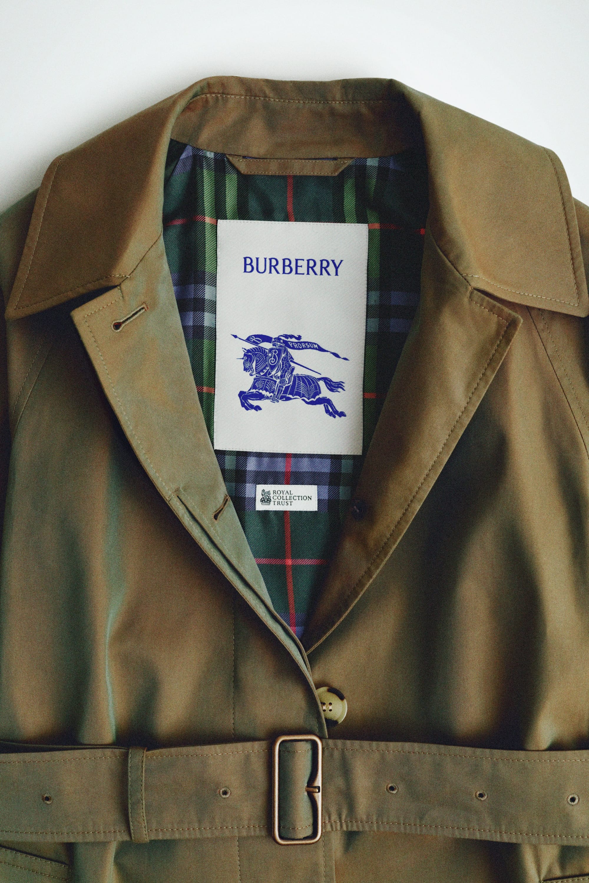 The products can be purchased online from royalcollectionshop.co.uk or from Royal Collection Trust Shops in London, Edinburgh, and Windsor. The Burberry collaboration is also available in Burberry shops worldwide, and the Launer London pieces from the Launer showroom. Kinloch Anderson products will be available from early April. The Fulton birdcage umbrella is exclusive to Royal Collection Trust Shops.