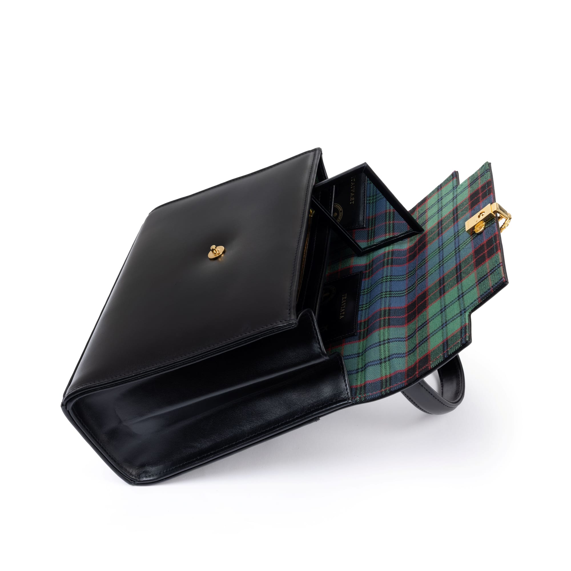 Launer London supplied the Queen with handmade handbags for more than 50 years and was granted a Royal Warrant in 1968. The centenary collection includes a black Traviata bag and green Judi bag, both featuring tartan linings supplied by Kinloch Anderson—reprising the trusted silhouettes the Queen used for engagements throughout her reign. Three Launer bags from her personal collection will be on display in the exhibition.