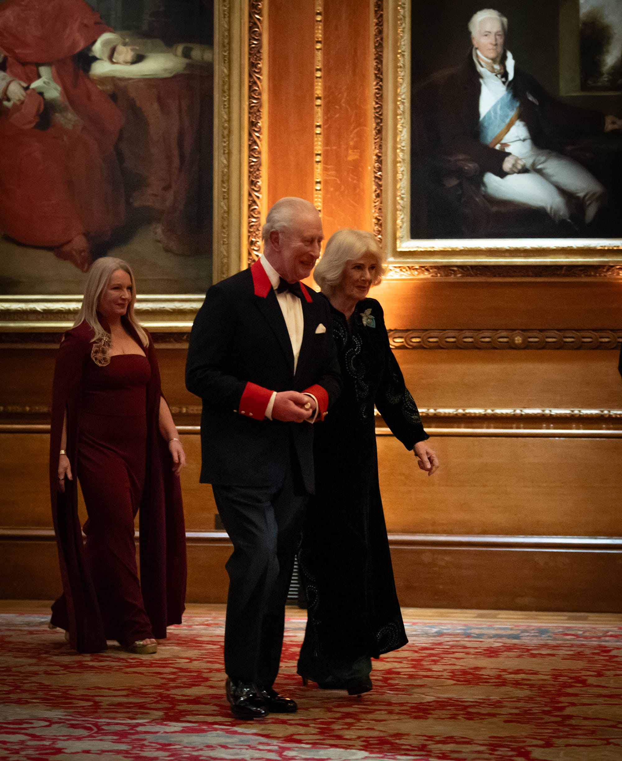 The premiere venue itself reflected the documentary's themes. The Waterloo Chamber—a principal State Room with a history of theatrical productions dating back to Queen Victoria—was transformed into a state-of-the-art cinema. The room was dressed in florals and foliage sourced from the Royal Gardens Nursery, all of which will be replanted on the estate after the event.